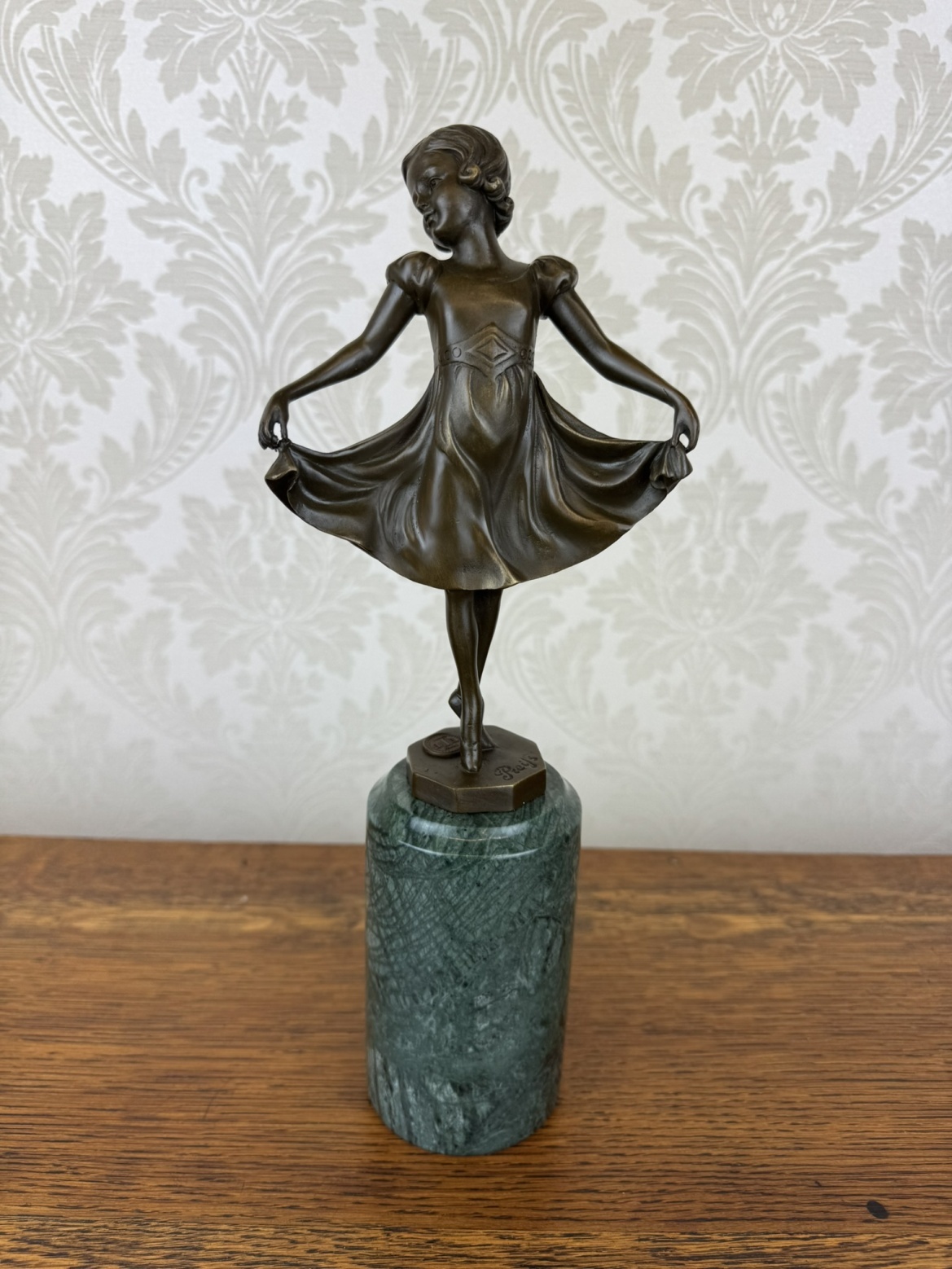 Bronzová soška mladej tanečnice podľa návrhu Freya na mramorovom podstavci, cena za ks