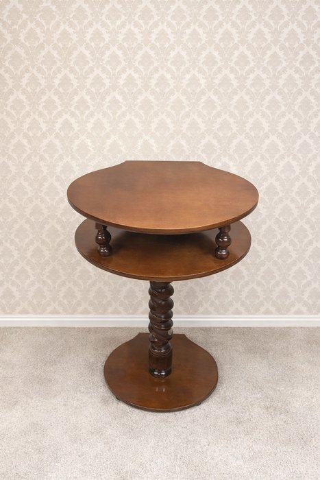 Odkladací stolík s dvoma doskami, spojenými výrazne špirálovito točenou centrálnou nohou, ktorá je dominantným prvkom.159,2 €