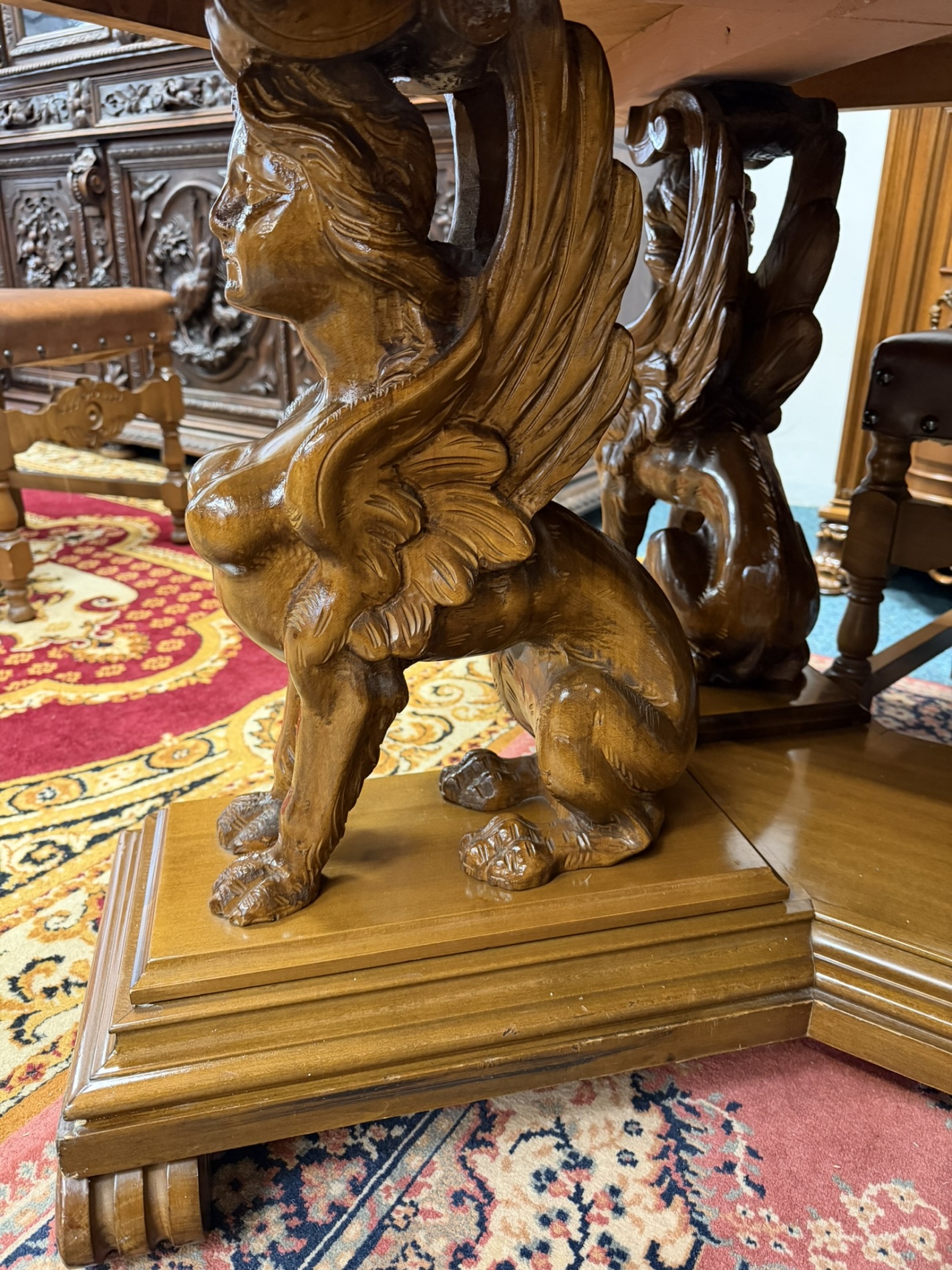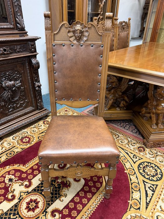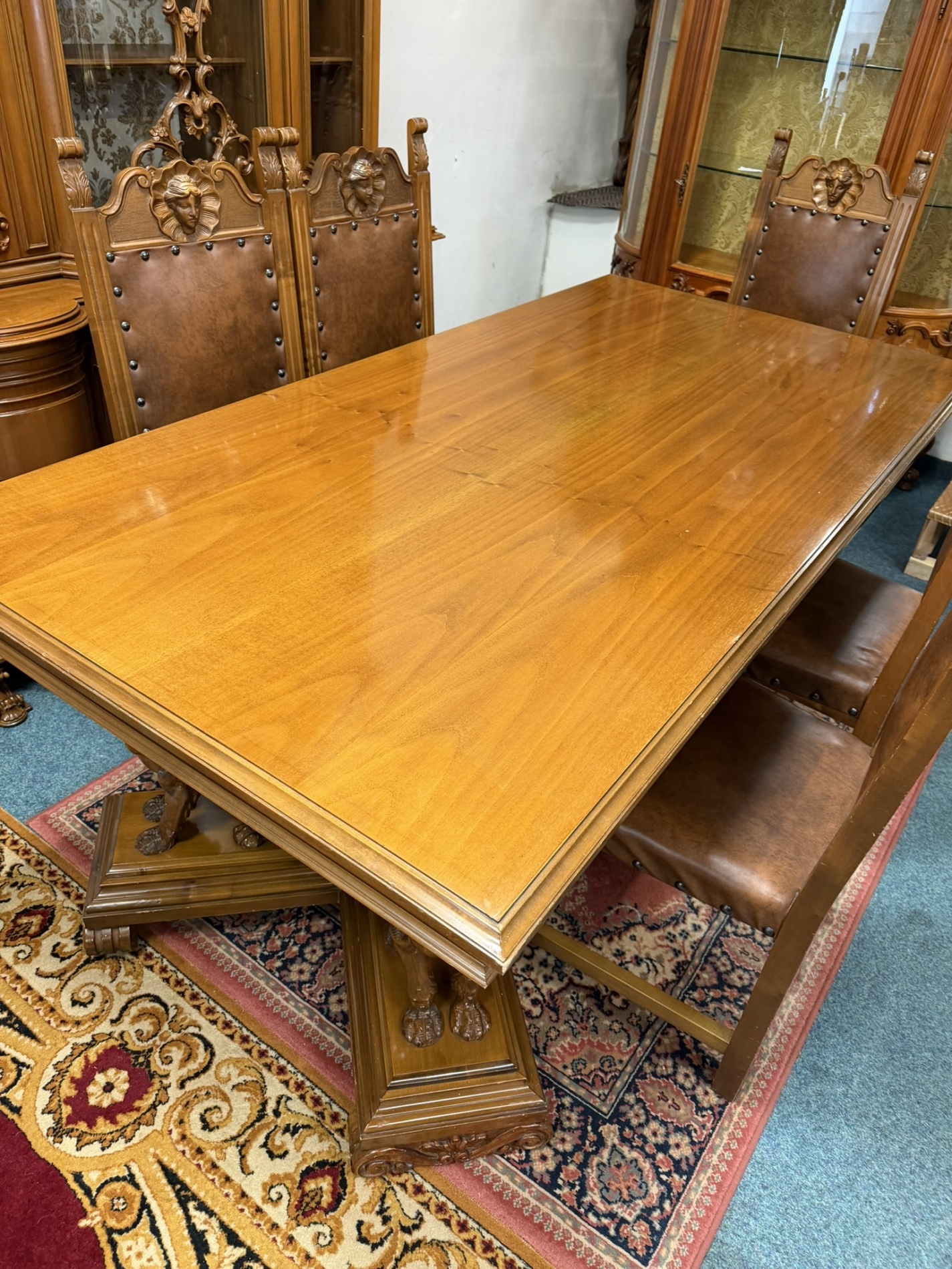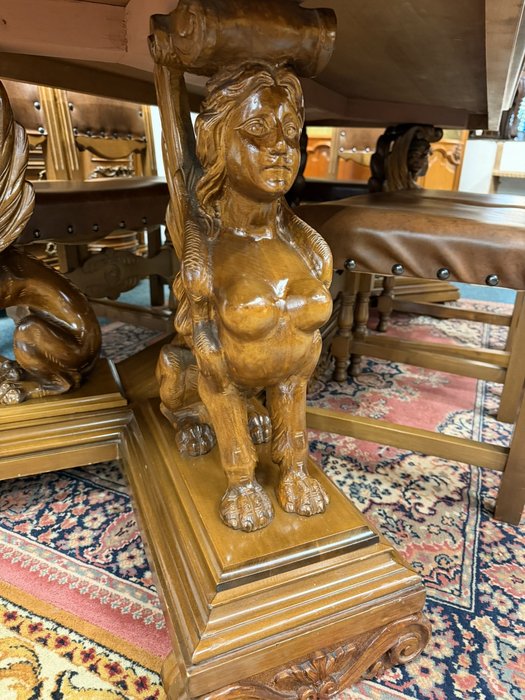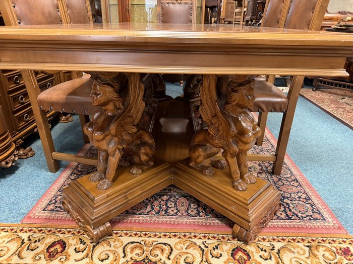Jedálenský stôl s rezbovanou podnožou sfíng a 6 stoličkami - ve65