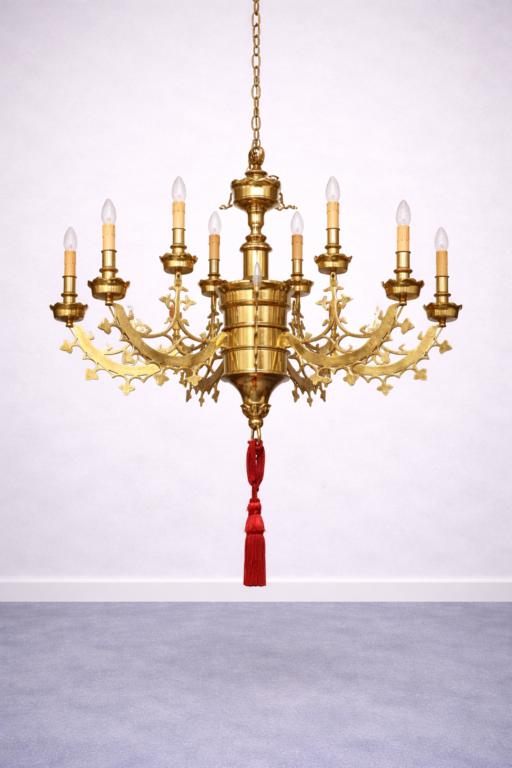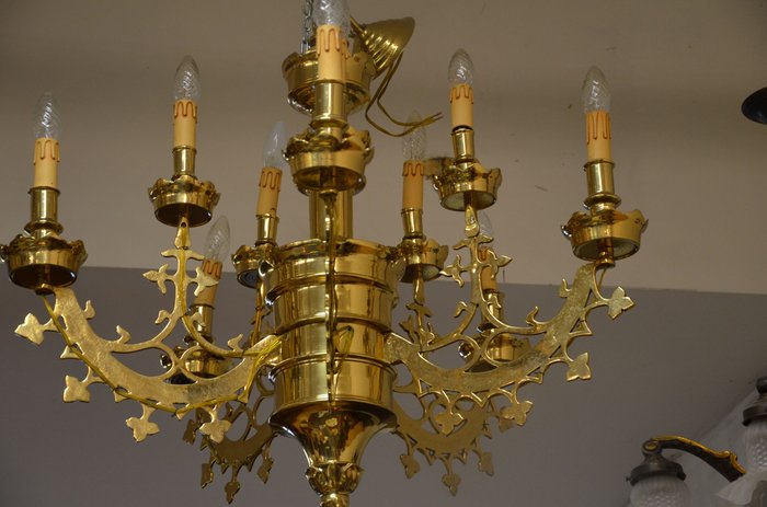Tento majestátny luster s ôsmimi ramenami je a zdobený bohatými klasicistickými detailmi. Každé z ramien nesie elegantnú sviečkovú objímku, ktorá umocňuje historický vzhľad svietidla. Robustná konštrukcia a starostlivé remeselné spracovanie z neho robí výrazný prvok každého interiéru. Ideálne pre reprezentatívne priestory, historické budovy či štýlové salóny.