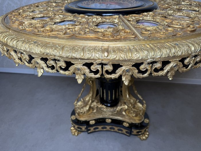 Luxusný salónny stôl s porcelánovými medailónmi - ex159
