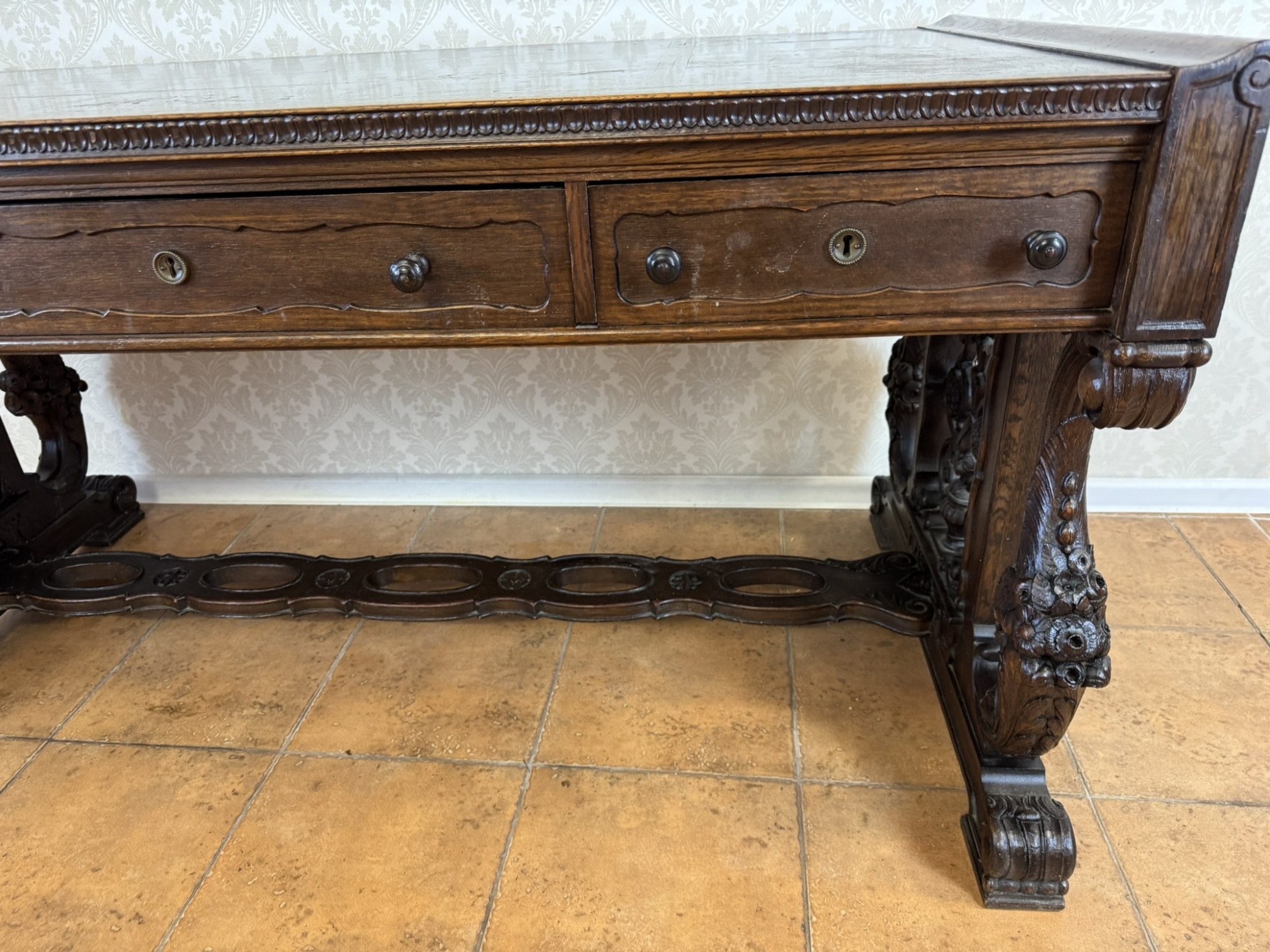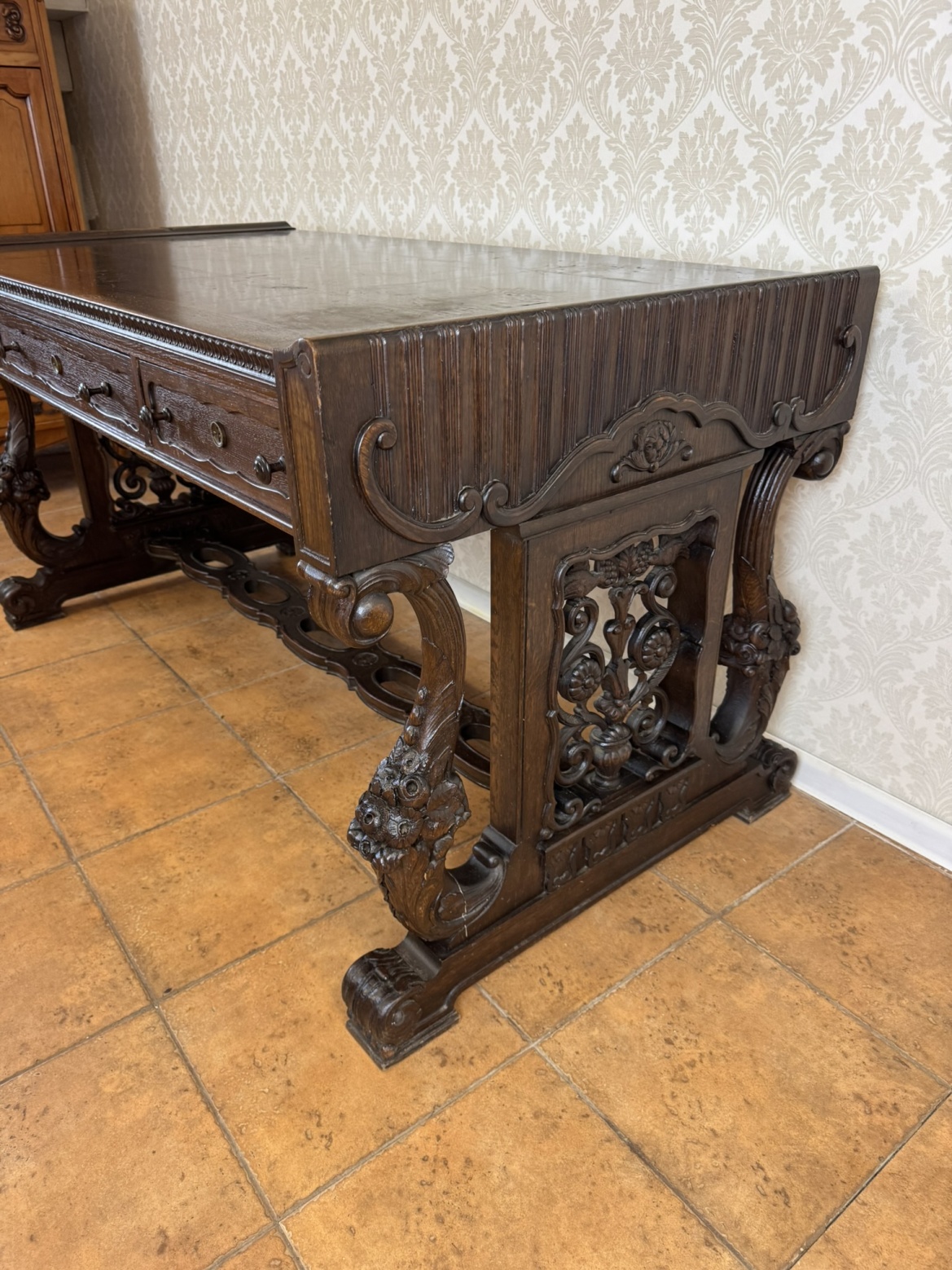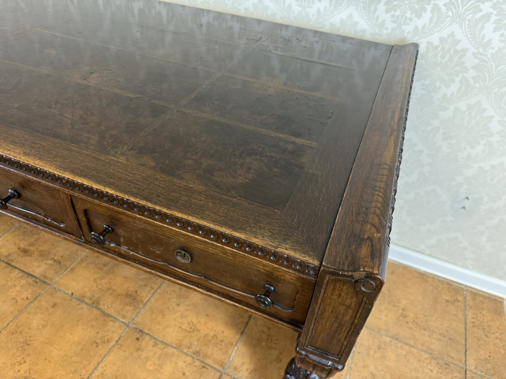 Masívny písací stôl s bohatou rezbou