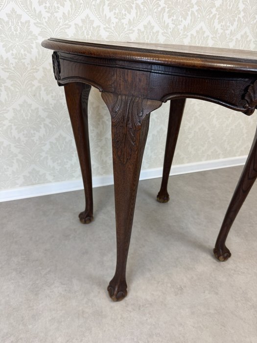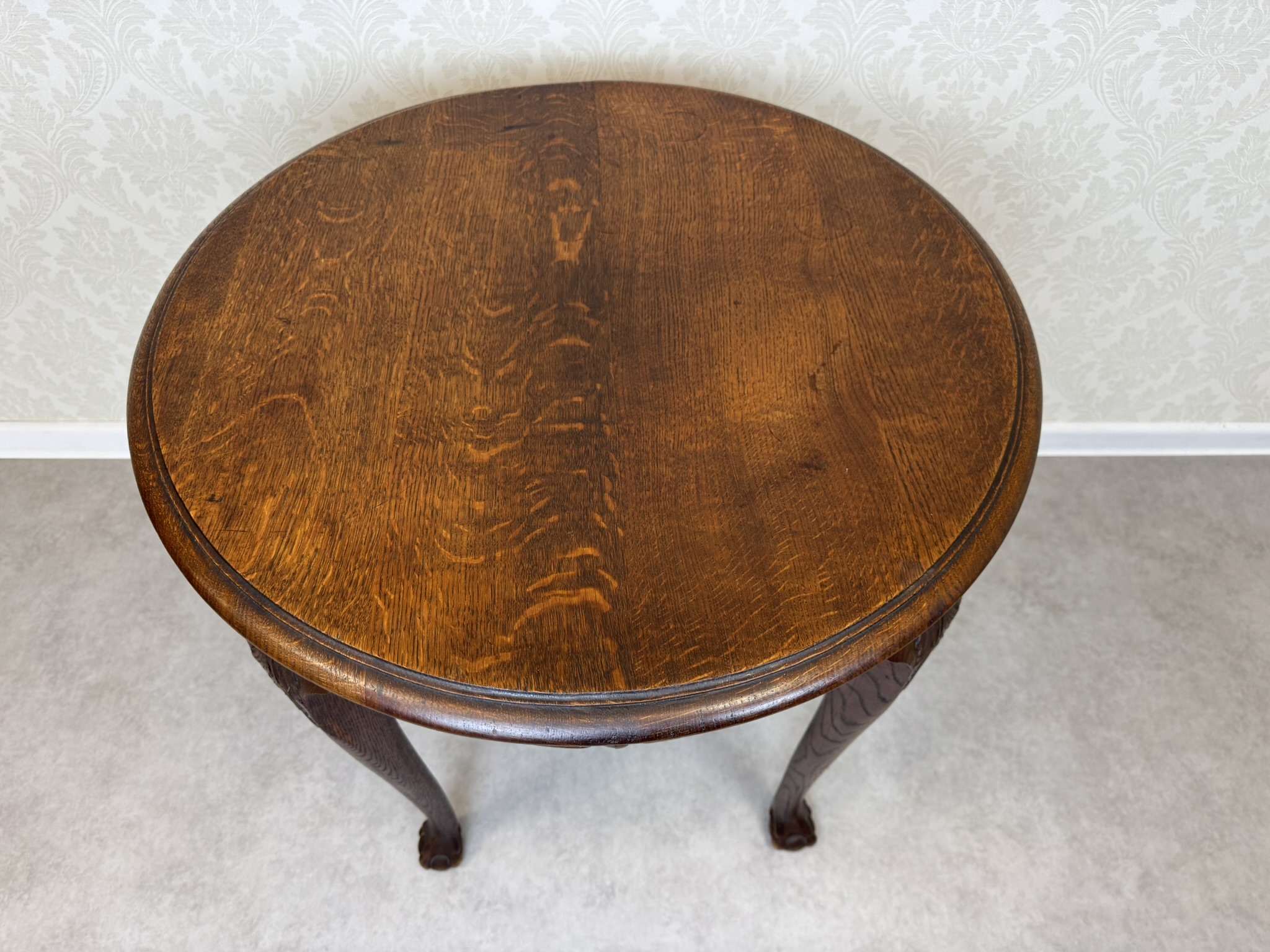 Okrúhly dubový stôl s vyrezávanými nohami
