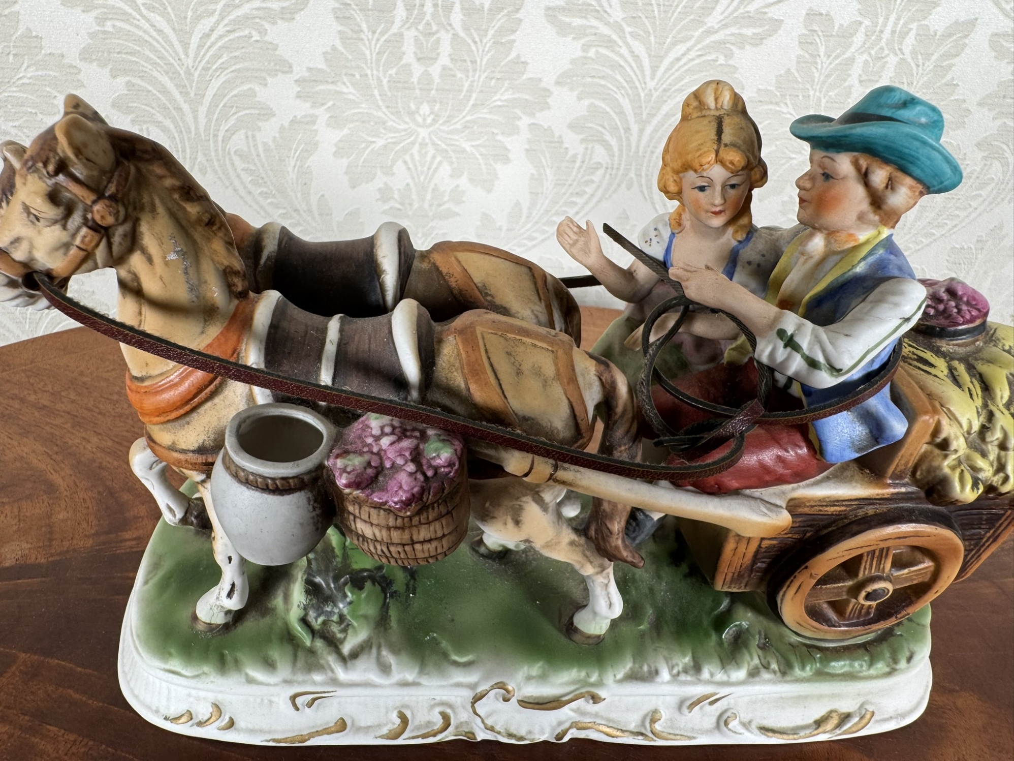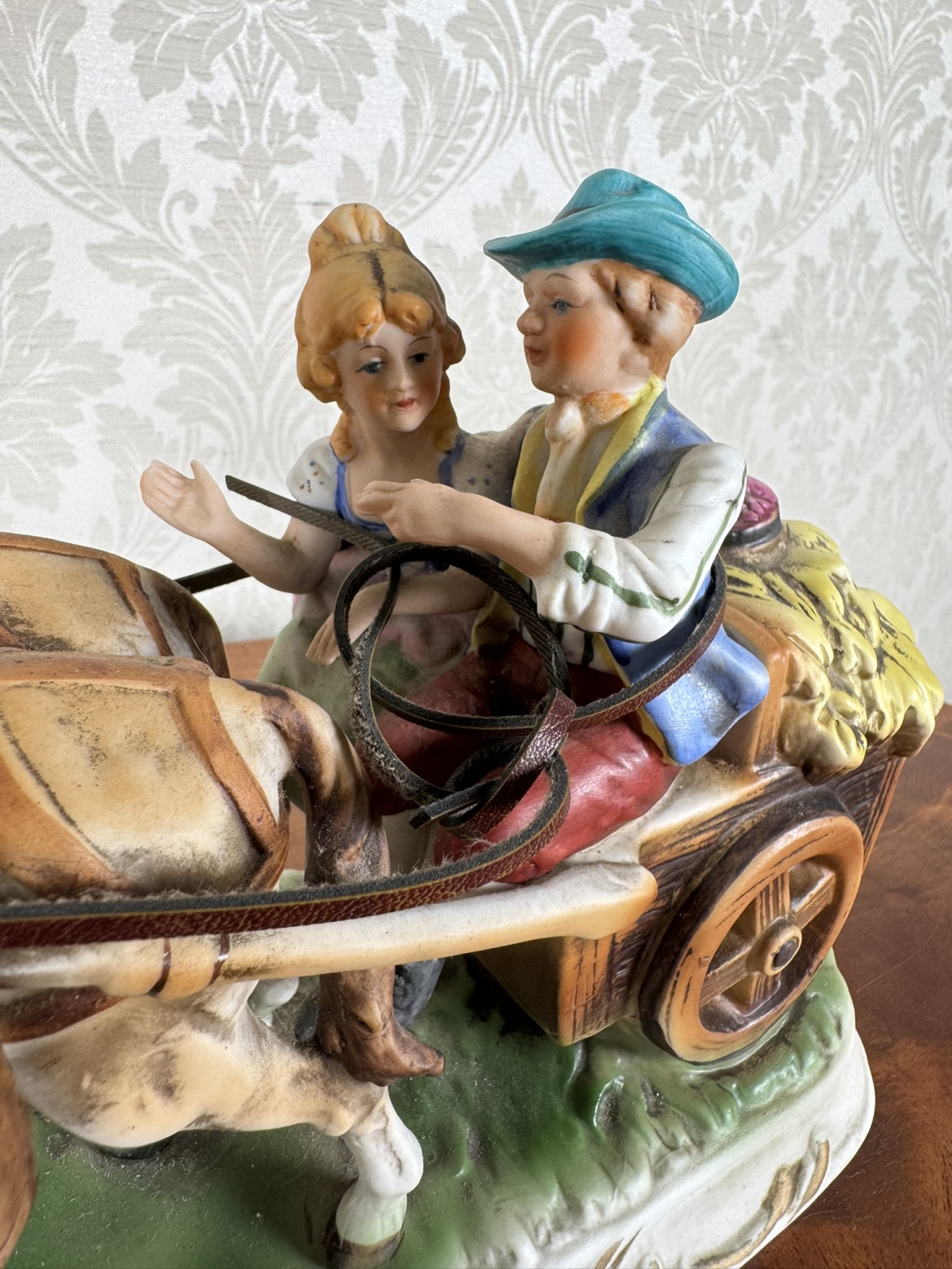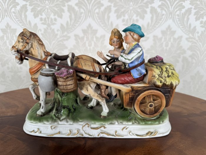 Porcelánová figurálna soška - pár na povoze - s139