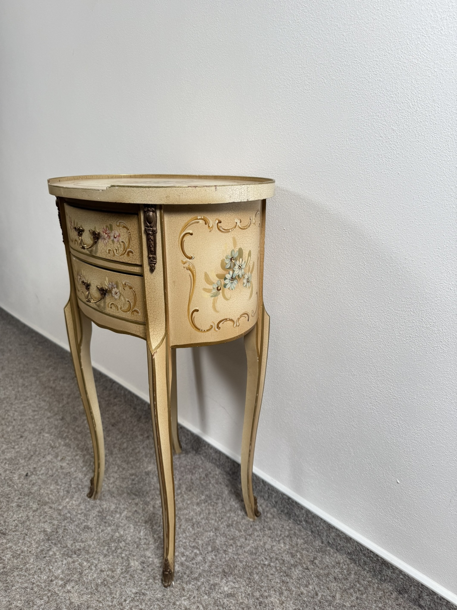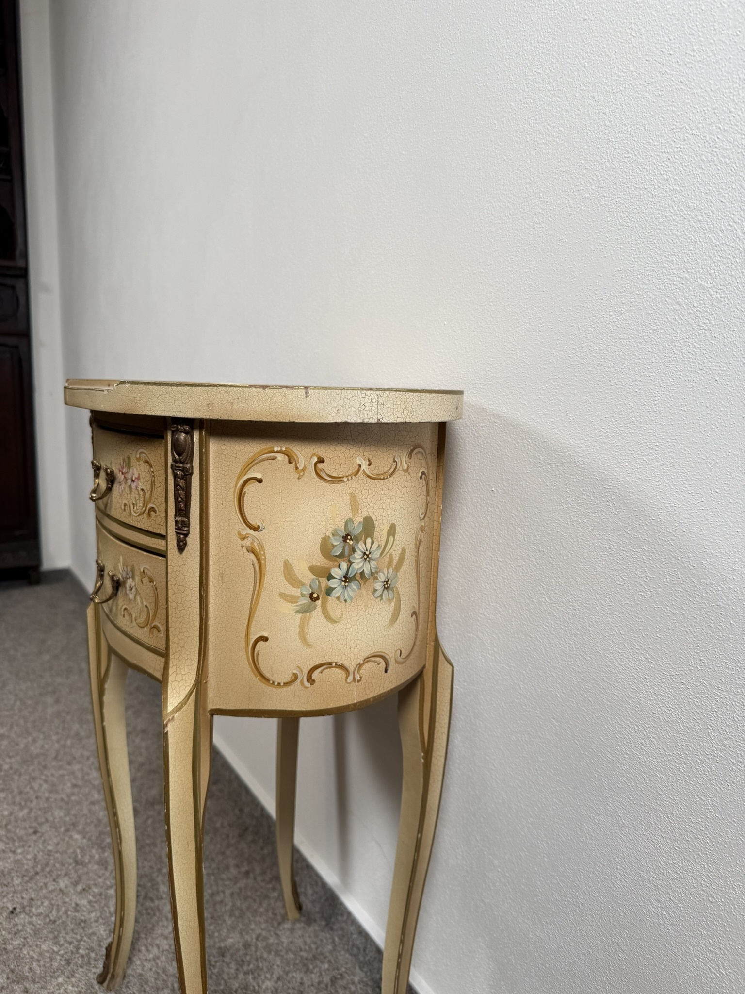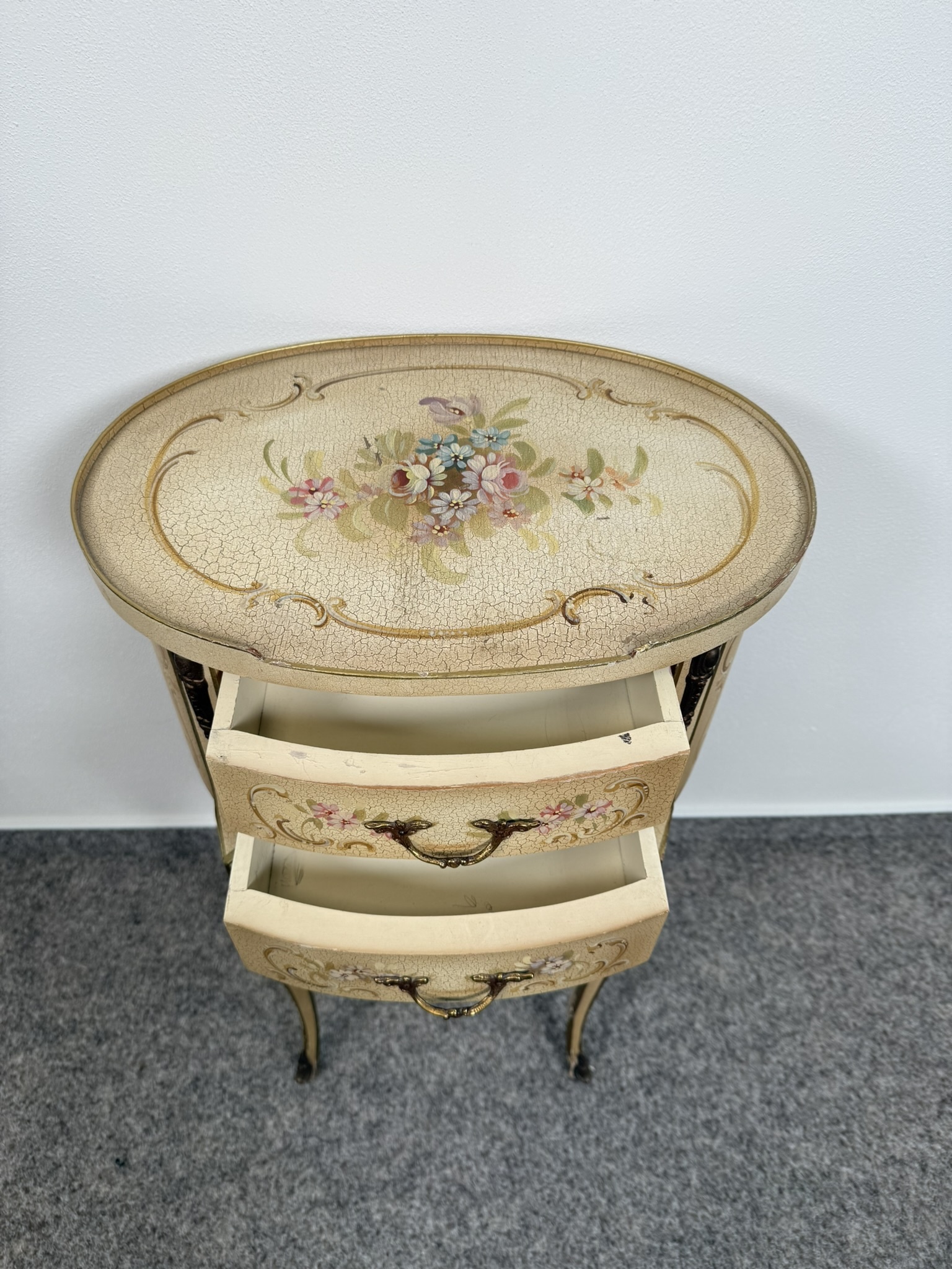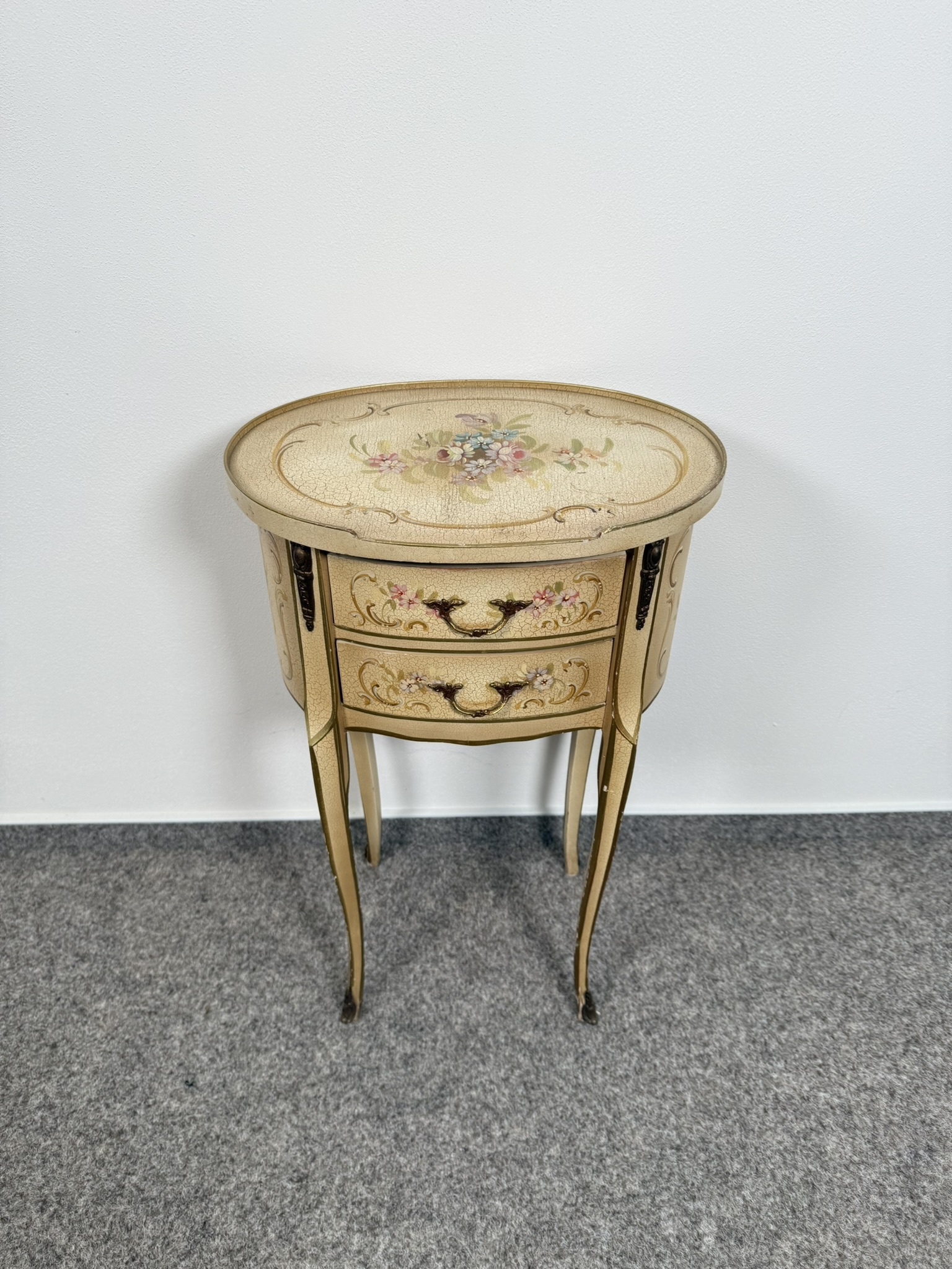 Oválny nočný stolík s maľovanými kvetmi - va166