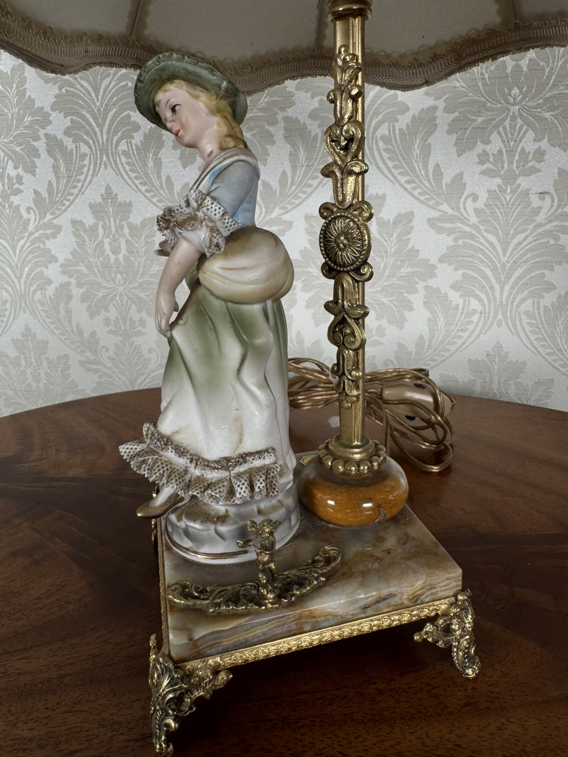 Porcelánová lampa s dievčaťom a kvetinovým košíkom - s150