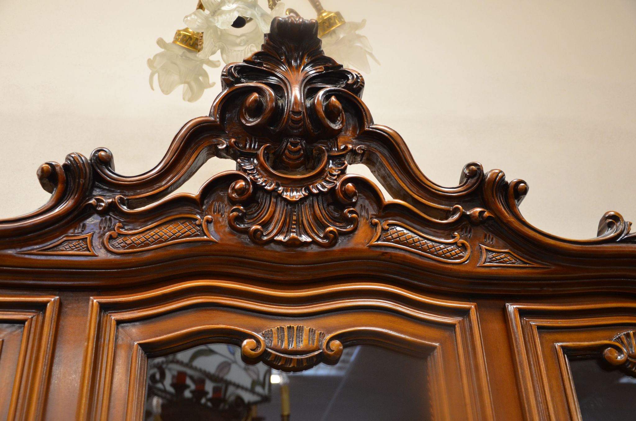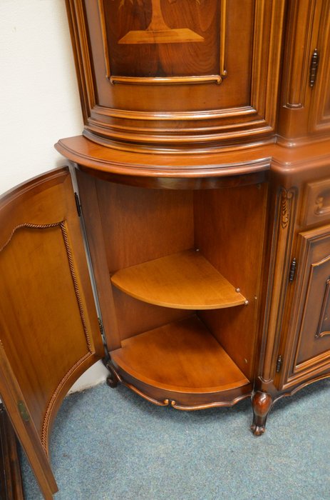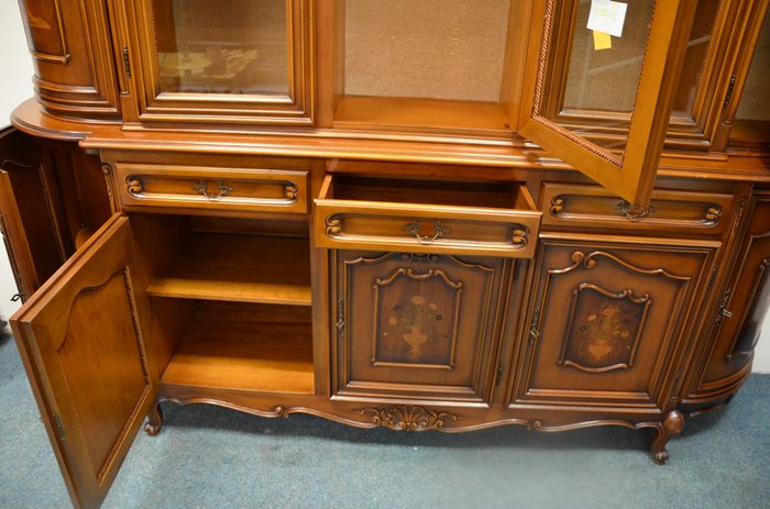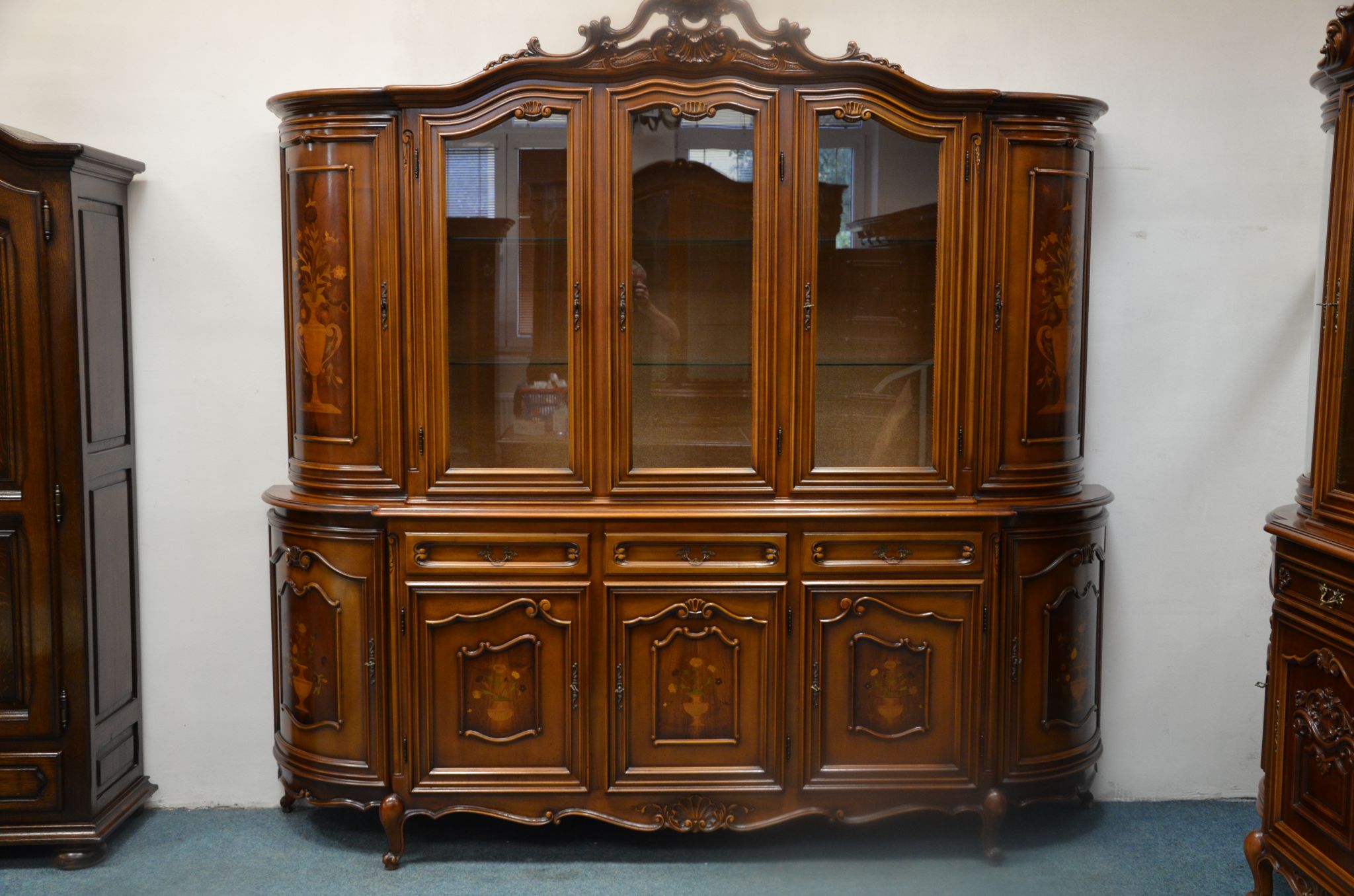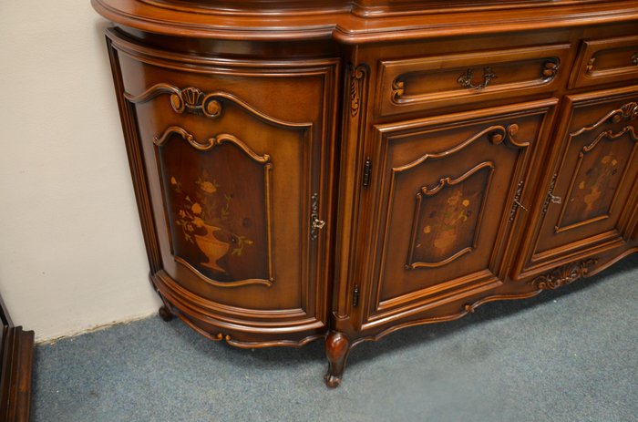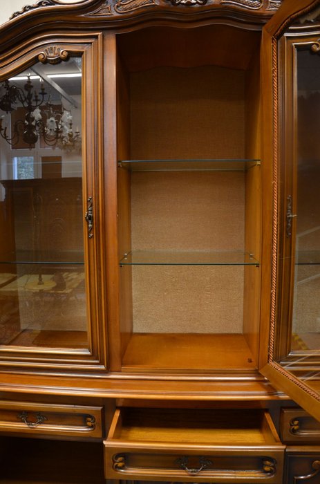 Tento příborník (příp. knihovna s vitrínou) je vyroben z vysoce kvalitního tmavého dřeva. Horní část má prosklené dveře . Spodní část nabízí několik prostorných skříněk a zásuvek, zdobených vyřezávanými ornamenty a intarziemi. Celý kus je zdoben jemnými detaily a zakřivenými liniemi. Příborník je složen ze dvou částí.
