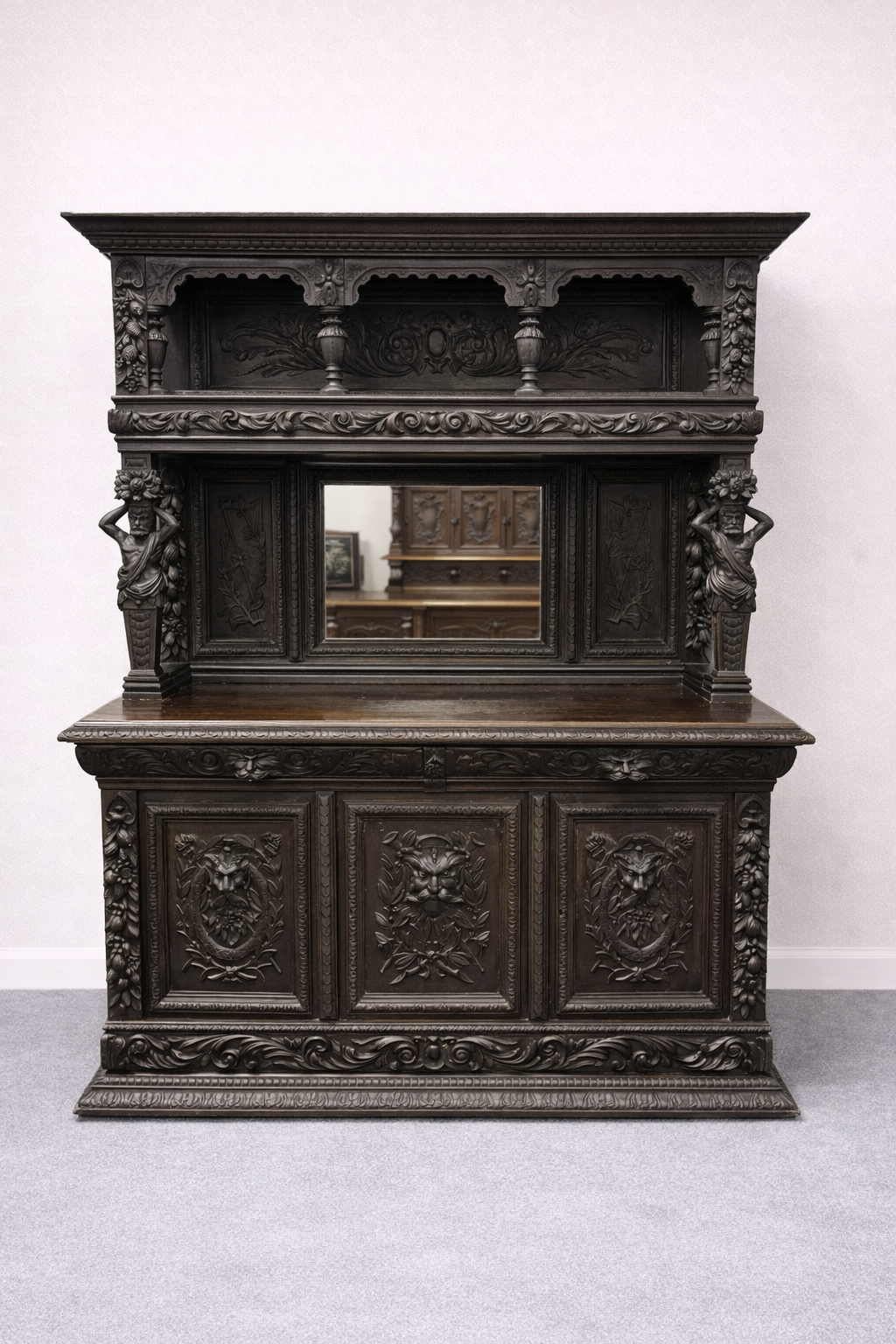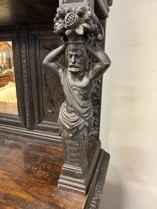Ručne rezaný dvojdielny príborník s atlasovými postavami - f63