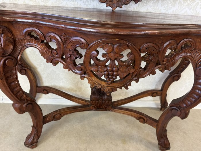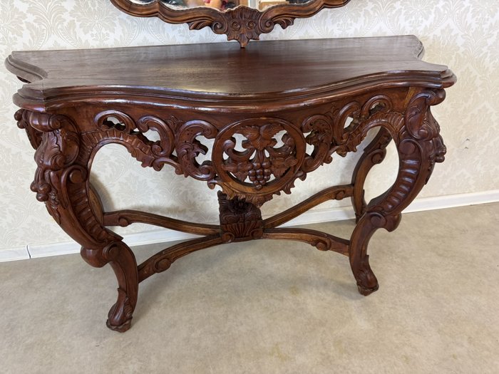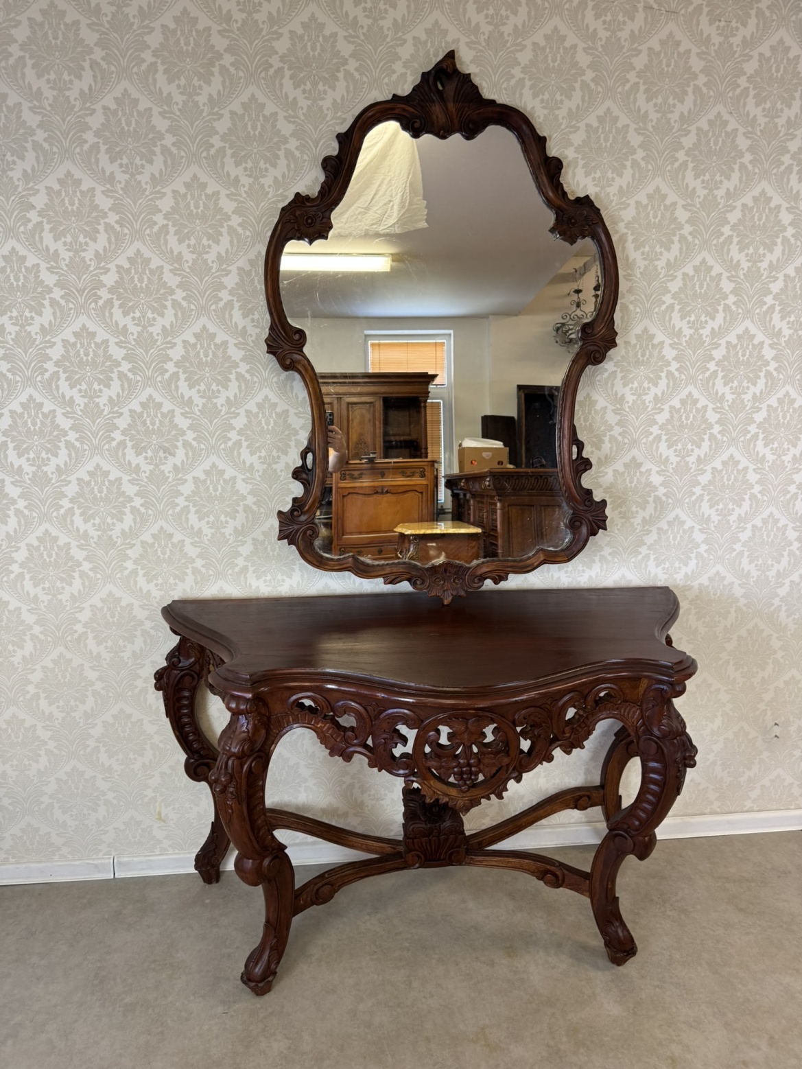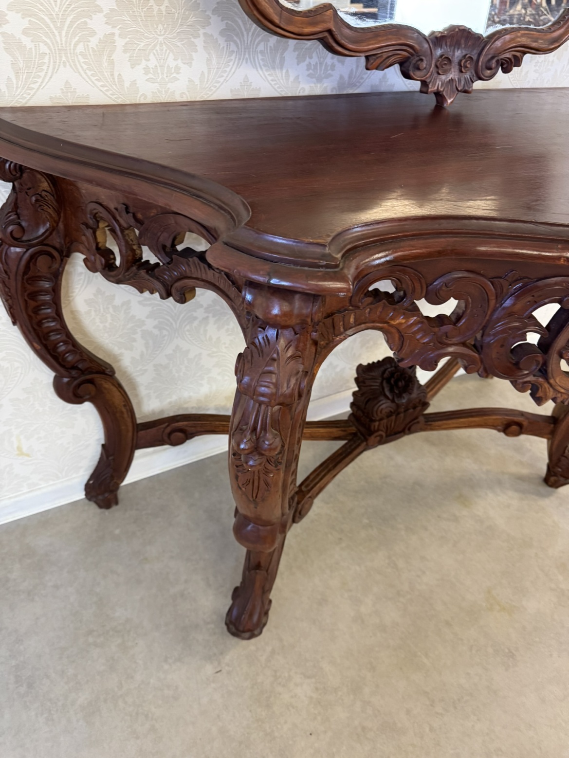 Ručne rezaný konzolový stolík so zrkadlom - f61
