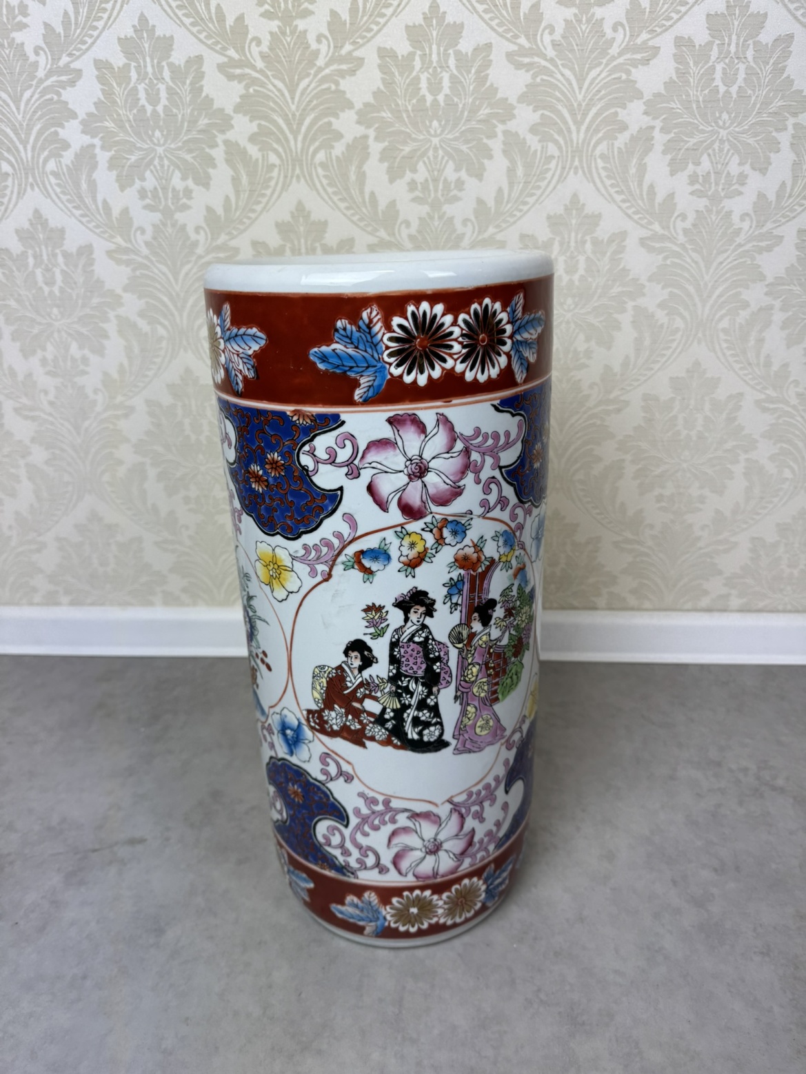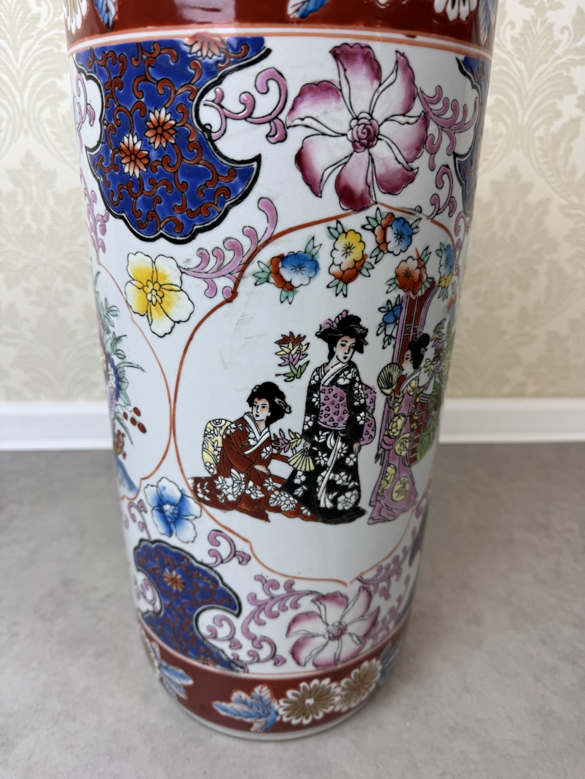 Váza je vyrobená z porcelánu. Je to dekoratívny kus s ručne maľovanými motívmi inšpirovanými východoázijskou estetikou. Ornamentálna výzdoba zahŕňa kvetinové vzory a figurálne výjavy typické pre čínsky alebo japonský porcelán. Charakteristické sú sýte farby ako červená, modrá a zlatá, kvetinové motívy a výjavy inšpirované tradičnou ázijskou kultúrou.107,2 €