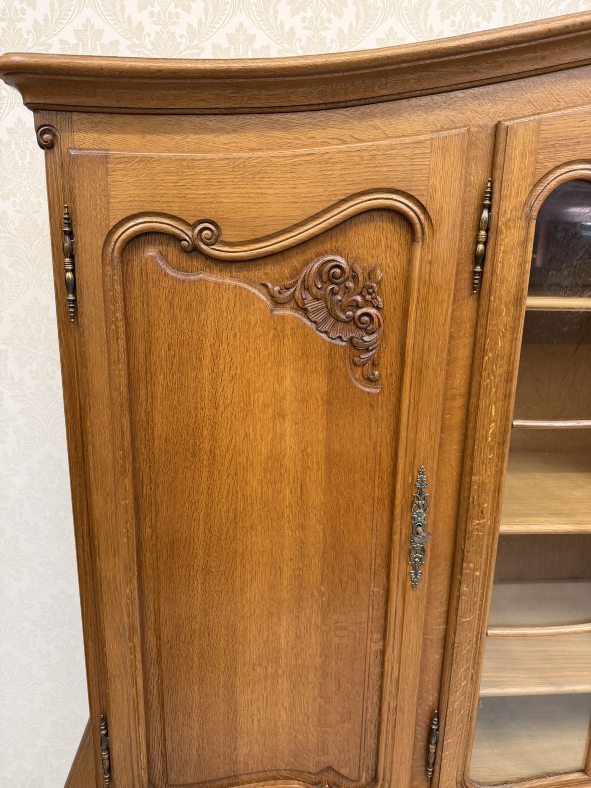 Vitrína s rezbovaním a presklenými dvierkami - va16