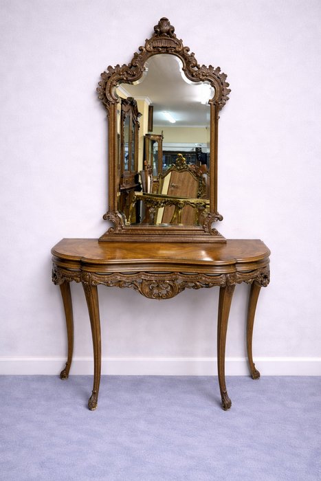 Zrkadlo s konzolovým stolíkom, orechové drevo - a102